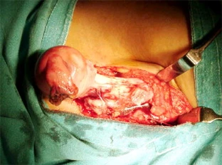 2005SadhooUK_KaulA: media.springernature.com Клиническая фотография, демонстрирующая головку бедренной кости [Clinical photograph showing the button-holed femoral head.]